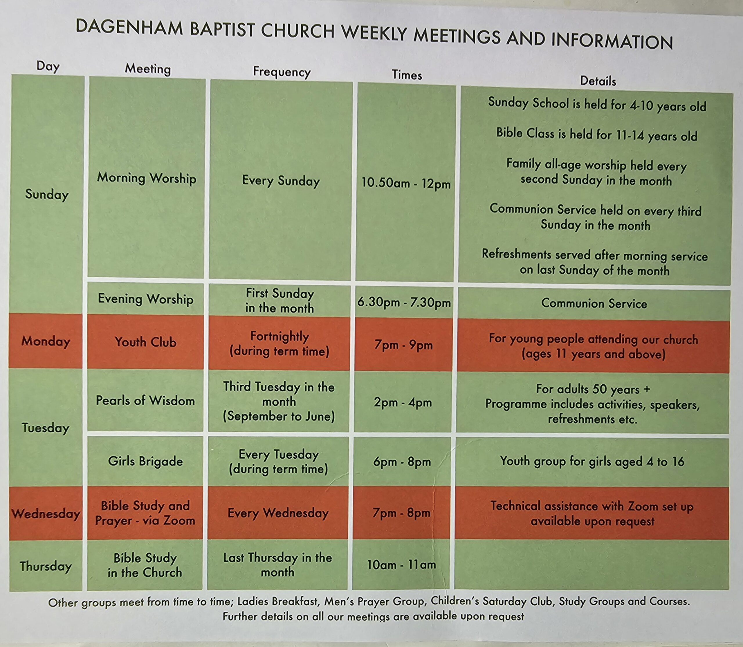 Proceeding along Wood from Becontree Heath (A124), Take A 1240 towards Heathway. Continue past shopping centre and railway station (Underground Dagenham Heathway) at the bottom of the hill, turn right into Hedgemans Road. Chaplin Road is the fifth turning on the left. The church is a short way down the road on the left. Coming from Martins Corner (Wood Lane), take 1153 (Porters Avenue) at mini roundabout turn left on to Gale Street, continue past shopping centre and railway station
